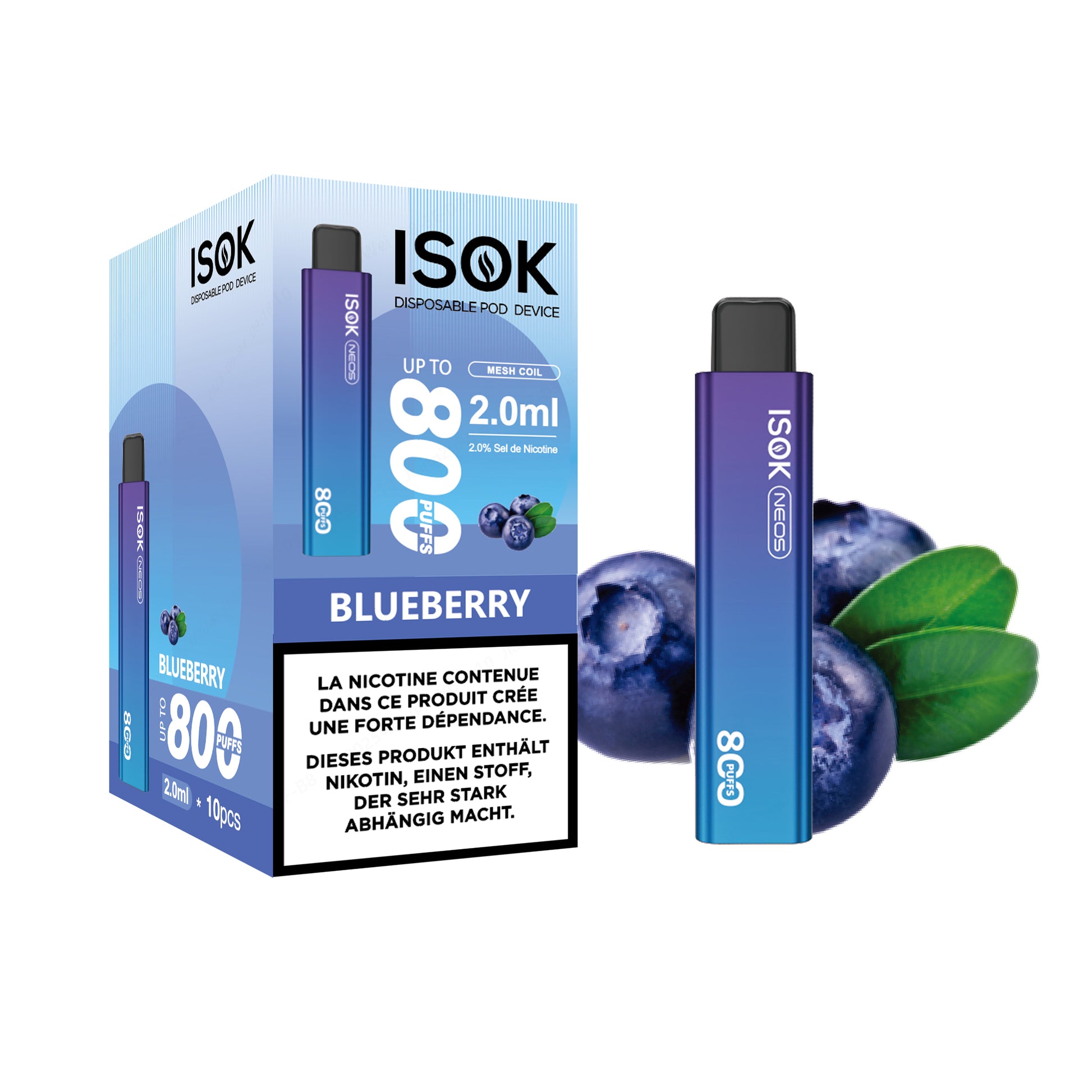 Cigarette électronique ISOK X & NEOS 800 Puffs Pack de 10 pcs Blueberry NEOS